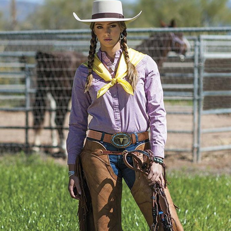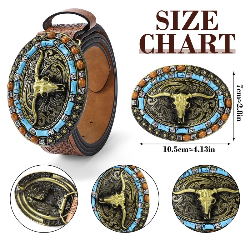 • [Western Belts Size] The width of this cowboy belt is 1.5 inches, which can fit through most pants and Jeans loops. Cowboy buckle leather has 7 oval holes, it can adjust to fit most people.