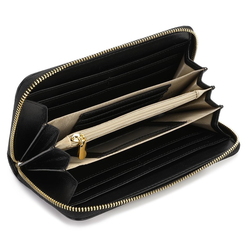 SENDEFN Women's Large Leather Wallet with RFID Protection, Large Capacity Long Purse with Removable Wrist Strap, Midnight Black