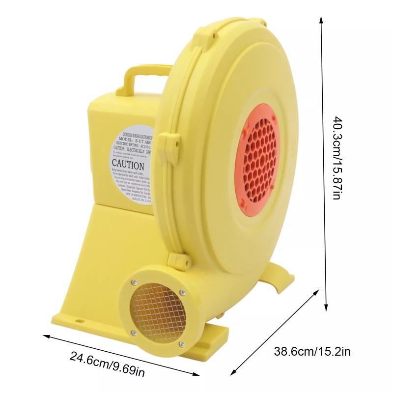 If you have inflatable products at home, then you must need an efficient inflatable blower. Our inflatable blower will be your ideal choice. It is made of flame-retardant and thickened PP material, which is very strong and durable. Moreover, it operates with high efficiency and strong wind power. Low noise operation will not disturb others when using.