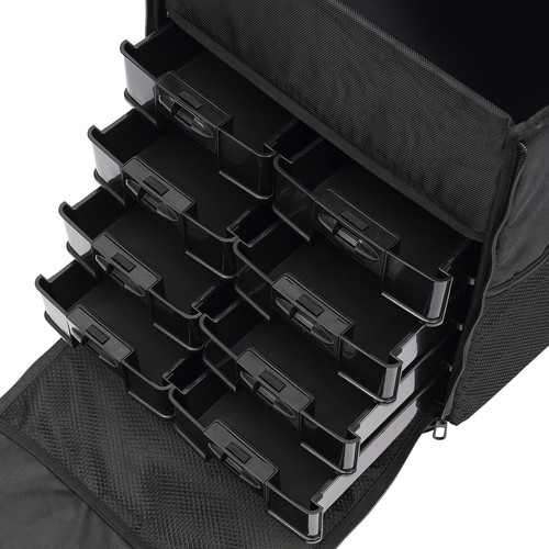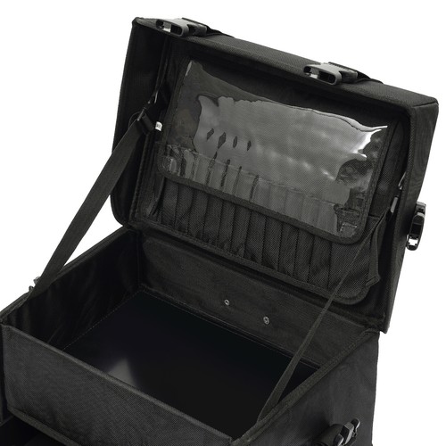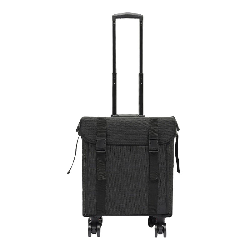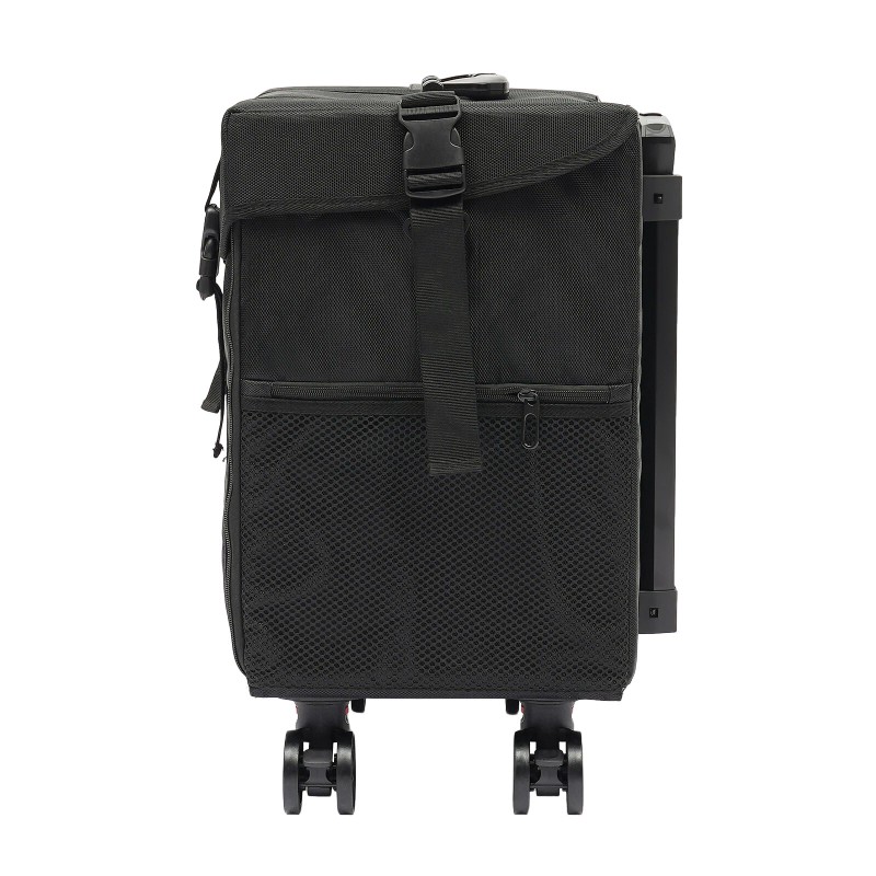 Rolling Makeup Case, Cosmetic Case Trolley, Make Up Suitcase Cosmetic Trolley, Makeup Suitcase with Wheels Specifications Material: Oxford Fabric, Aluminum Alloy, PE Color: Black Style: Modern Shape: Rectangular Buckle: Straight Insert Wheel: Removable Universal Wheel  Carrying Method: Hand-held, Hand-pulled Number of Pieces: 1 Gross Weight: 9kg/19.84lbs Net Weight: 8.5kg/18.74lbs  Product Size: 38*29*42cm/14.96*11.42*16.54inch       Drawer Size: 37*28.5cm/ 14.57*11.22inch Top Compartment Size: 38*28*9cm/ 14.96*11*3.54inch     Package Size: 42*30*43cm/ 16.54*11.81*16.93inch Description Do you want luxury and durability at work or at home? You can find it here! The rolling makeup case is made of high-quality Oxford fabric, waterproof, durable, and easy to clean. 8 removable drawer