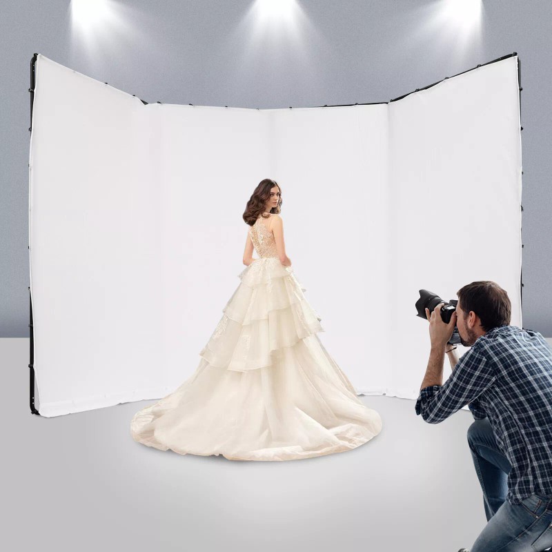 Adjustable Design: The large 13.12*7.87ft frame can present a wrap-around background. You can adjust it into different shapes as you need to meet the dead-angle-free shooting.