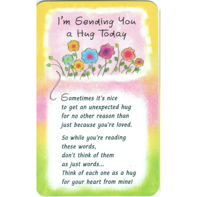 - Reads:"I'm Sending You a Hug Today. Sometimes it's nice to get an unexpected hug for no other reason than just because you're loved. So while you're reading these words, don't think of them as just words... Think of each one as a hug for your heart from mine!" hug hug hug hug hug hug