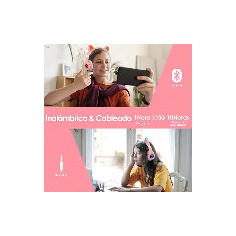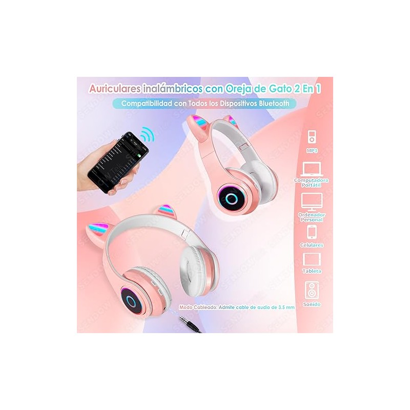 Sendowtek - Sendowtek Auriculares Inalámbricos con Orejas de Gato - Bluetooth 5.0, Micrófono, Plegables, LED, Over-Ear, Hi-Fi para Juego/Música/PC/Celular (Rosa). 🏆 Reconocido por su excelente relación calidad-precio. Diseño ergonómico y funcionalidad excepcional. 📦 Entrega rápida y segura. Ideal para quienes buscan lo mejor en calidad y estilo. Producto auténtico con satisfacción total asegurada. ¡No te quedes sin el tuyo y aprovecha esta oportunidad única!