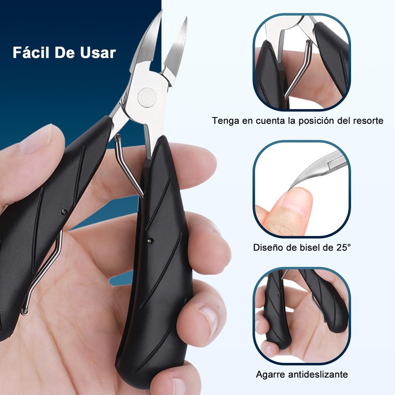 - Cortaúñas Mejorado: Este cortaúñas biónico de alta resistencia con forma de carey está diseñado para cortar uñas de pies y manos de forma segura. Su cuchilla curva de 25° está diseñada para uñas gruesas y encarnadas. Es ideal para personas mayores, deportistas y pacientes con afecciones podológicas.