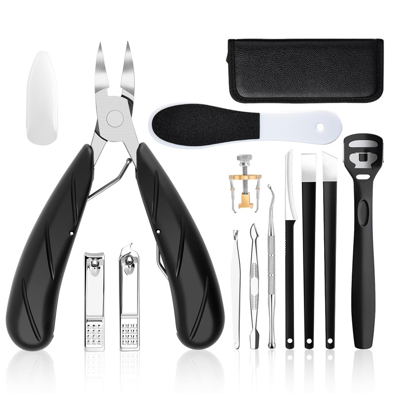 - Set De Manicura 13 En 1: El set de manicura incluye 11 herramientas diferentes, un raspador de cutículas y una bolsa de almacenamiento para satisfacer todas tus necesidades de cuidado de uñas. Este completo set está diseñado para cuidar eficazmente tanto las manos como los pies, garantizando que tus uñas se mantengan sanas y limpias. Ayuda a prevenir la paroniquia y alivia las molestias asociadas con las uñas gruesas.