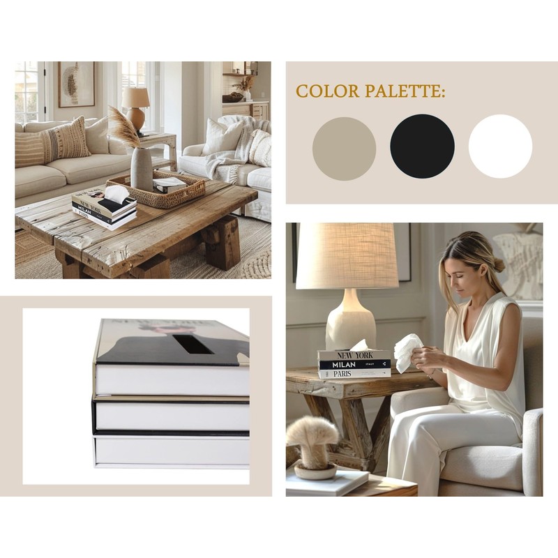 - Unique Design, Decorative and Functional - The first of its kind, beautiful décor book style tissue box cover. Looking for a way to beautify your space and still have easy access to your tissue, Look no further. The most functional piece of decoration you need. A perfect blend of aesthetic appeal and practicality. Let’s hide the patterned generic tissue box pattern and make your space more unique, fashionable and chic