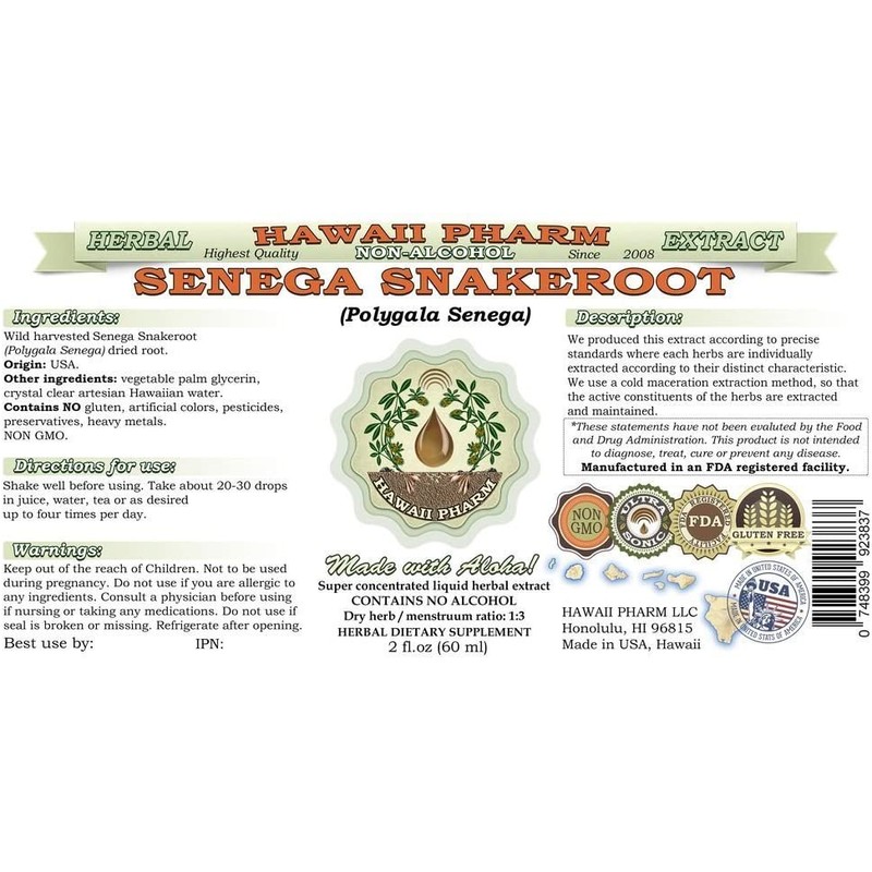 - High Quality Senega Snakeroot NON-Alcohol liquid extract- we use classic conventional methods of extraction! We meticulously produce our extracts according to precise standards where each herb is extracted according to the distinct characteristic of each plant!