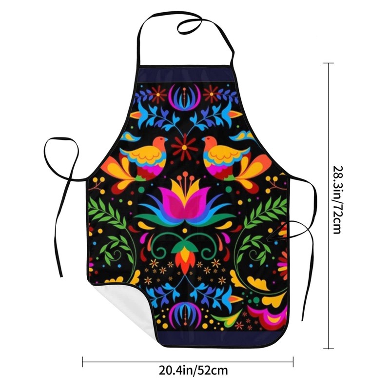 - ❤ Design --- The Colorful Mexican Background With Flowers And Birds Apron Has One Pockets At The Front And A Strap At The Waist.