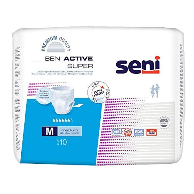 Seni Active Super Incontinence Briefs Disposable M, Pack of 10, White