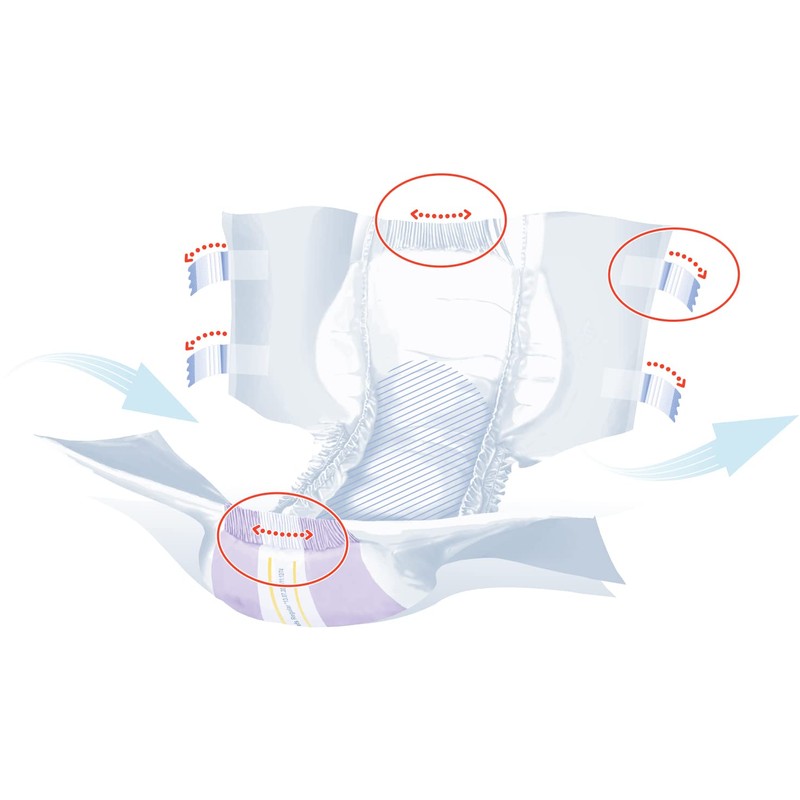 • Elastic leg cuffs ensure perfect fit.; Elastic elements at the waist, front and back together with double elastic combi-tapes ensure a better adjustment of the briefs to the body