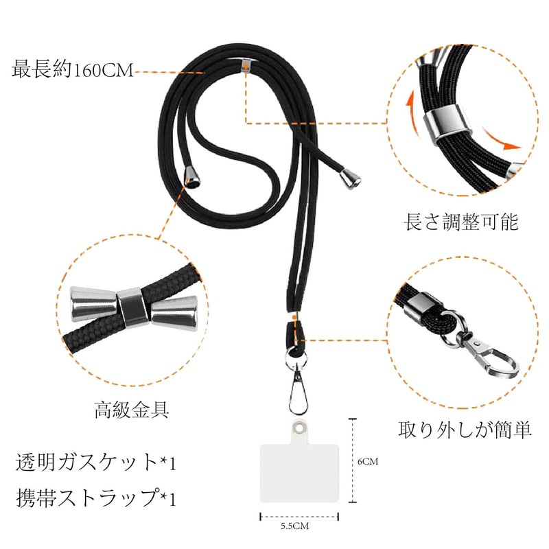 - Product Features: Made of high quality nylon material with excellent durability and abrasion resistance. The phone strap is adjustable, so you can hang it on your neck or diagonally. The width is ergonomically designed and not too thick or thin and is lightweight and comfortable, and does not interfere with charging, so it is compatible with all models. Package Contents: Strap x 1, transparent tag patch x 1. ★Note: This product does not include a smartphone case