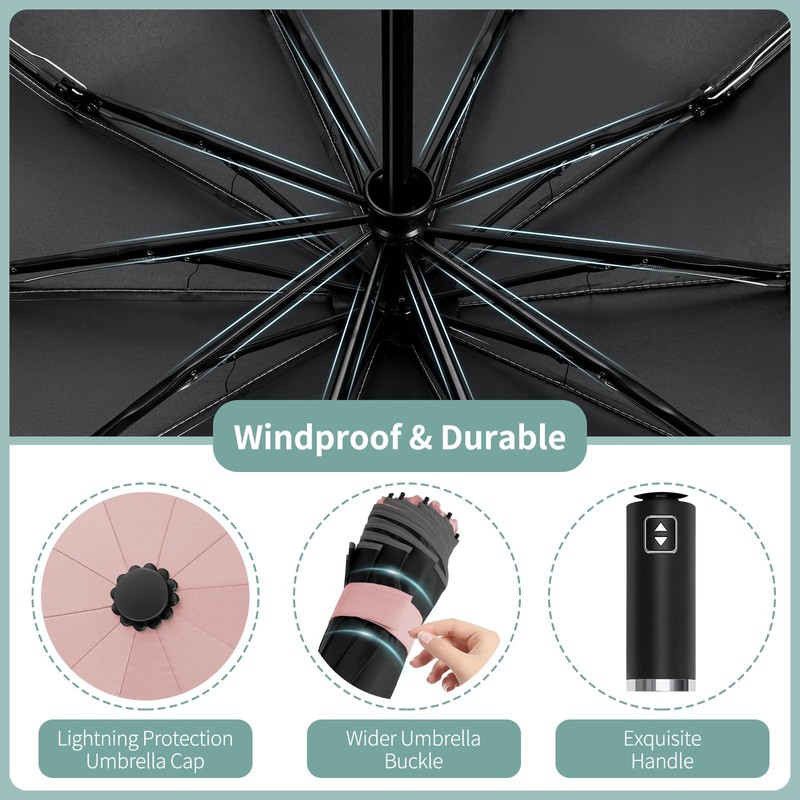 - 【Unique Inverted Umbrella】Say no to wet vehicles and floors! With an innovative reverse design, our uv umbrellas for sun protection enable the damp canopy to fold inside, avoiding splashes and keeping your car or floors dry with more neatness. Also, the travel umbrella compact features reflective strips to offer high visibility for extra safety on gloomy days.