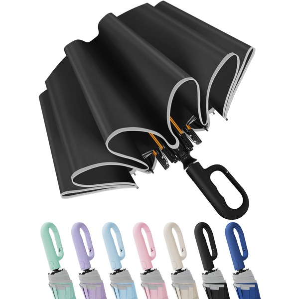 - 【Reinforced 10-Rib Large Umbrella】Wind or rain, this travel umbrella compact won't let you down! Boasting a dual-rib aluminum structure, it stands strong against heavy winds. Say no to a flipped umbrella large on gusty days. Its canopy is high-density and flexible, repelling water with ease and keeping you dry on rainy days.