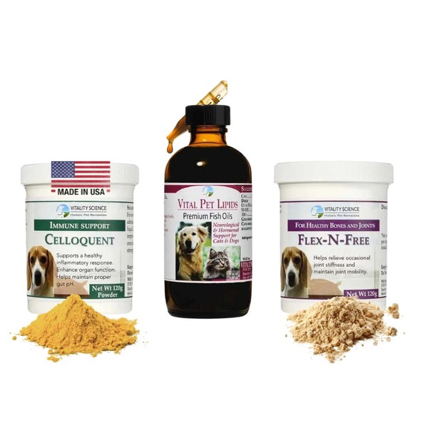 - Celloquent 220g, Vital Pet Lipids 8oz, Flex-N-Free 220g