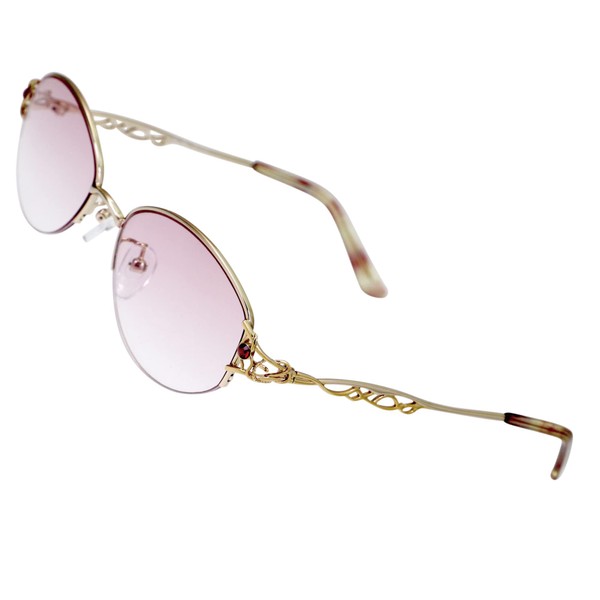 - フレームのデザインはレンズ下部に枠の無い”ナイロールタイプ”。フレームが軽く、手元を見る際にも視野を妨げません。テンプルには輝きの良いクリスタルを嵌め、レンズも老眼鏡には珍しいハーフカラーとしました。