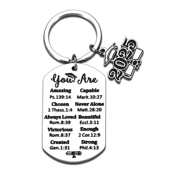 - Graduation decorations class of 2025: “You are amazing, capable, chosen, never alone, always loved, beautiful, victorious, enough, created, strong.” Happy graduation of 2025! One of the best ways to congratulate your friend or family member on their accomplishment is to give them a thoughtful, handcrafted present. This funny keychain will be good gifts for college girls, cool gifts for graduates, graduation gifts for boys.