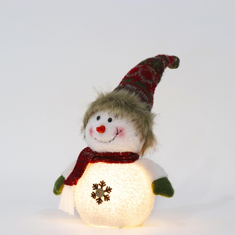 Senjie 9.5 inch Lighted Snowman Figurines Plush Doll,Christmas Doll Tabletop Decorations Indoor Red