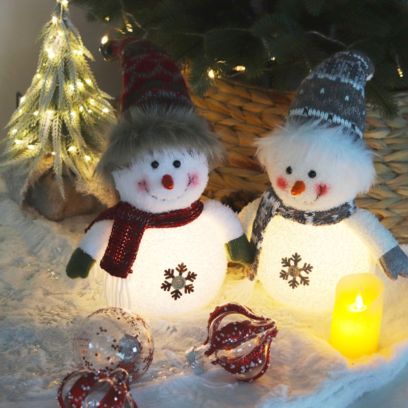 - MATERIALS:The Christmas decoration is made of high quality cotton cloth and pvc, the fine stitching makes the decoration strong and durable, you can reuse Christmas decorations. The plastic inside the snowman supports the entire appearance and shape, and there is a small light inside that can emit light.