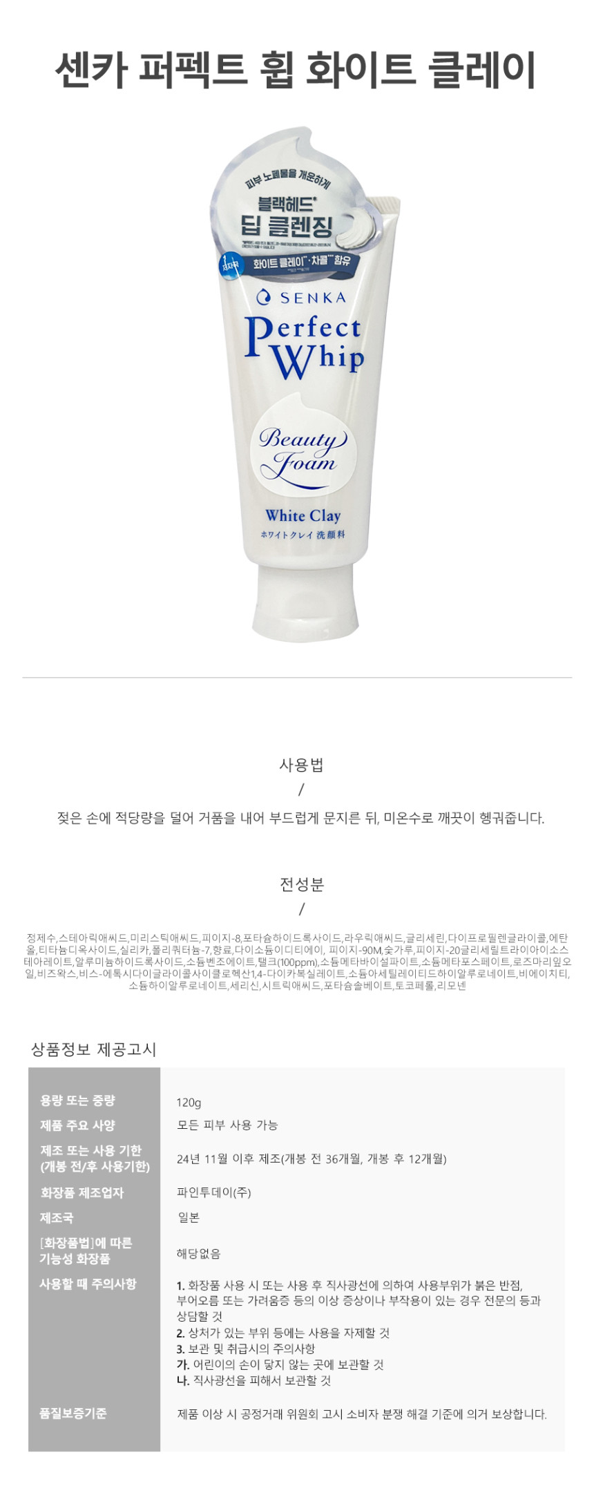센카 퍼펙트 휩 화이트 클렌이 클렌징 폼 120g