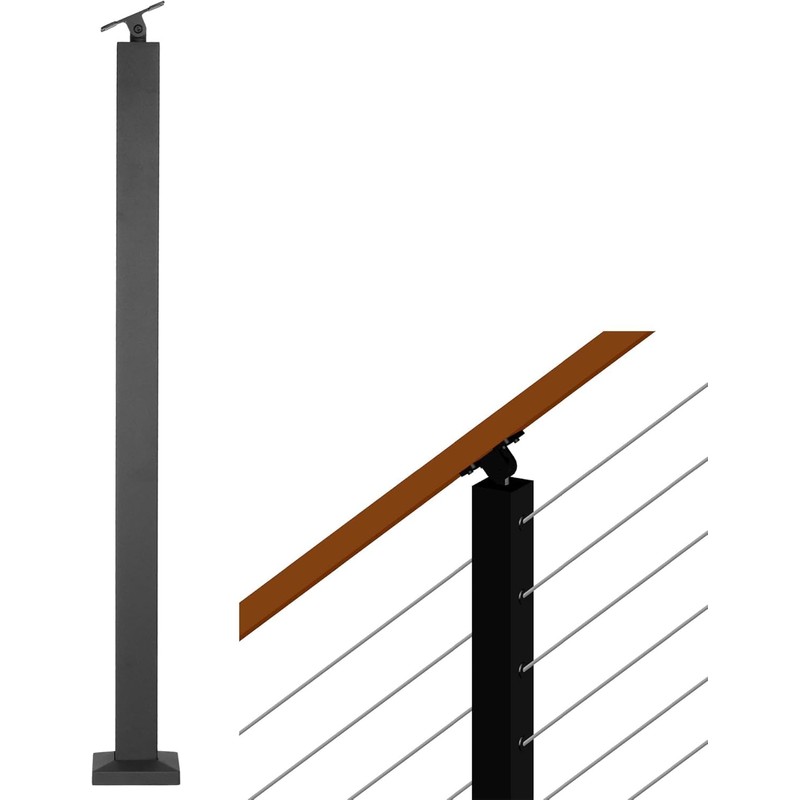 Senmit Cable Railing Post for Steps - Stainless Steel Square Fence Post for Deck Stair Cable Railing System,30°Angle Adjustable Top 36"x 2"x 2" Matte Black 10 Holes Pre-Drilled