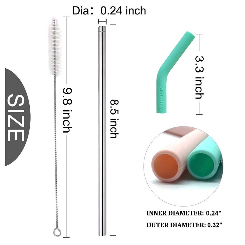 - Detachable Silicone Elbow Tips: Silicone elbow tips is flexible and detachable, easy to clean and cleaner to clean, dishwasher safe. Silicone tips prevent our mouth from directly touching the stainless steel straw for a comfortable pleasant drinking experience.