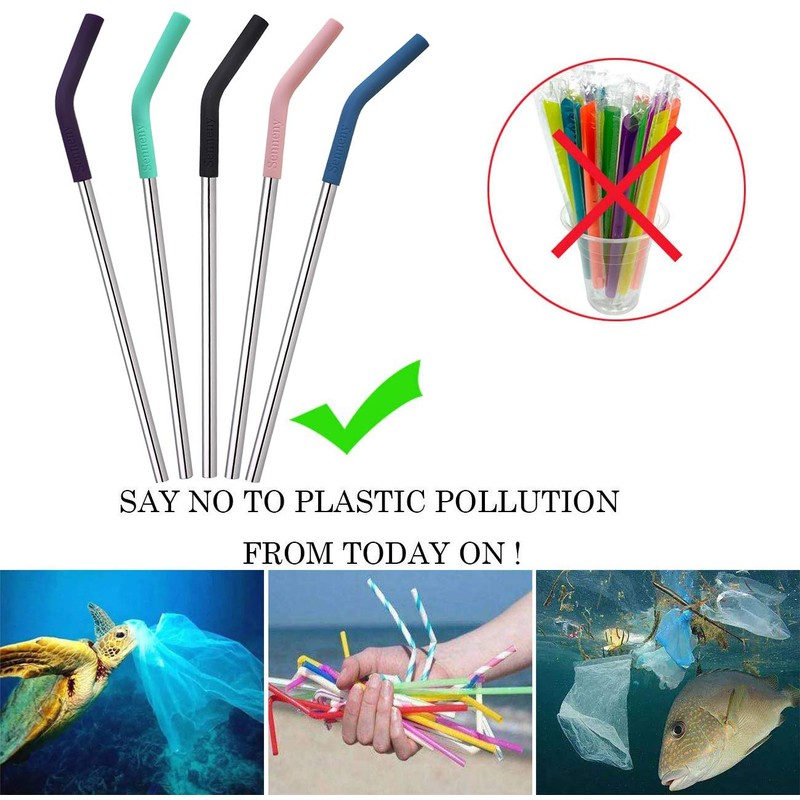 - Best Value: Includes 5 stainless steel straws, 5 silicone elbows tips, 2 cleaning brushes and 1 carrying bag.
