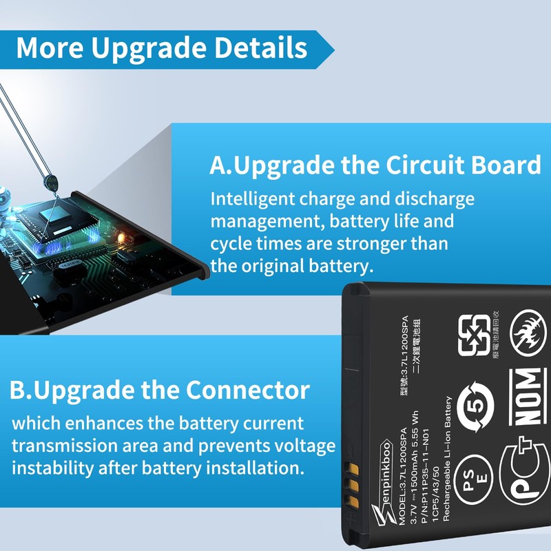Senpinkboo for Texas TI-84 Plus CE Battery 1500mAh for Texas Instruments TI-84 CE Battery Part No. P11P35-11-N01/3.7L12005SPA 3.7V
