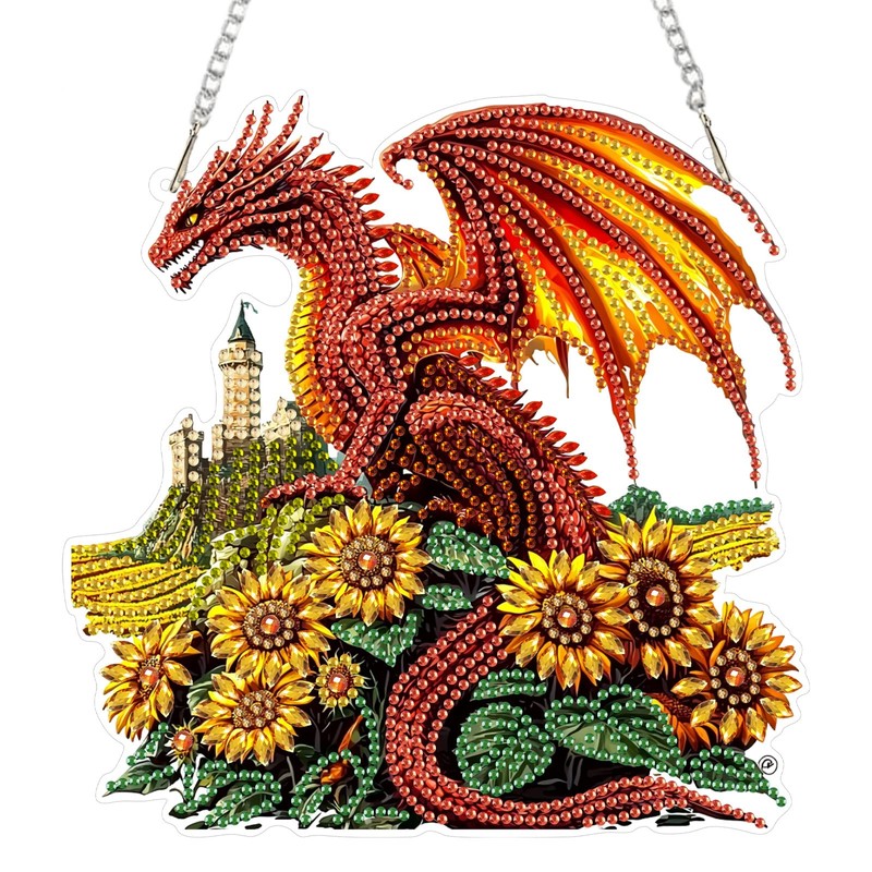 SENQAO Dragon Diamond Art Hanging Kit for Adult, Special Shaped Rhinestone, Double Sided DIY Acrylic Diamond Art Painting Window Pendants Home Garden Wall Hanging Kits Hanging Ornament (Sunflower)