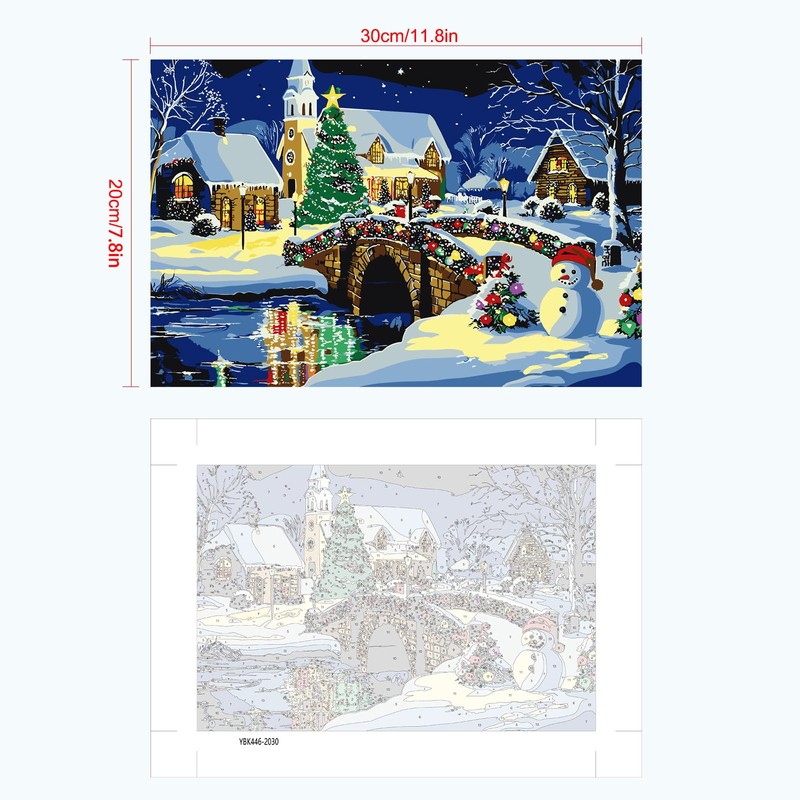 SENQAO Framed Paint by Numbers Kit for Adults, Christmas Night, Acrylic on Canvas, 7.8x11.8 inches, Wooden Easel Included