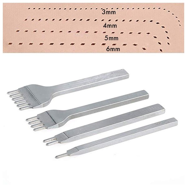 SENRISE Leather Craft Tools 4PCS 1/2/4/6 Prong Leather Hole Punches Tool DIY Stitching Leather Craft Tools Kit Diamond Lacing Stitching Chisel Set (6mm)