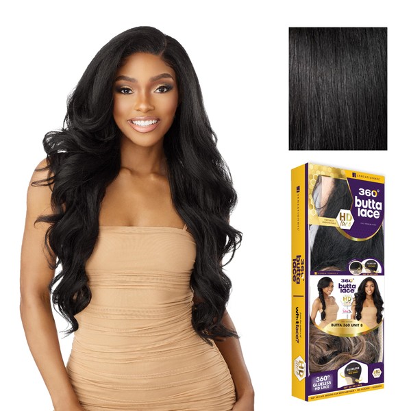 Sensationnel Butta 360 Lace Wigs - Unit 8 Side Wider Parting 360 Degree Lace Glueless Synthetic Preplucked Hairline (1 JETBLACK)