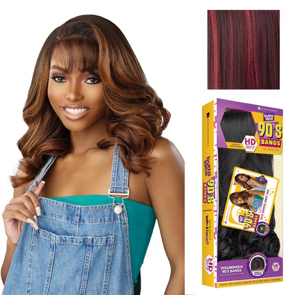 Sensationnel Butta lace 90sbangs wigs - unit 908 glueless wide deep part synthetic preplucked hairline (BALAYAGEDARKCHERRY)