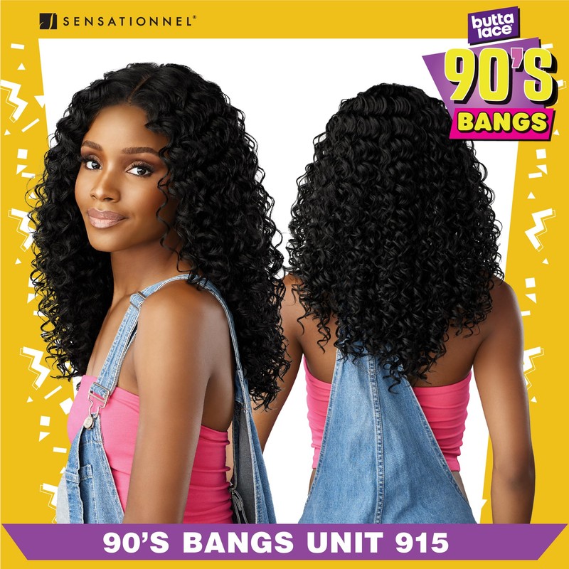 - Brand : Sensationnel Butta lace 90s Bangs Glueless Synthetic Hair deep curved c part lace frontal pre-plucked hairline HD lace wig
