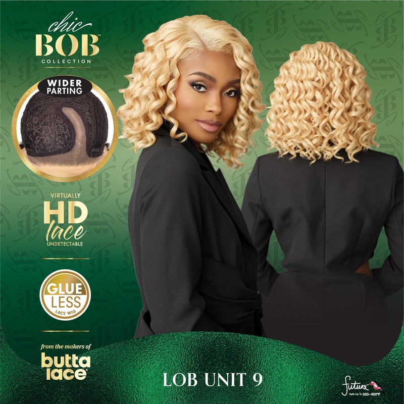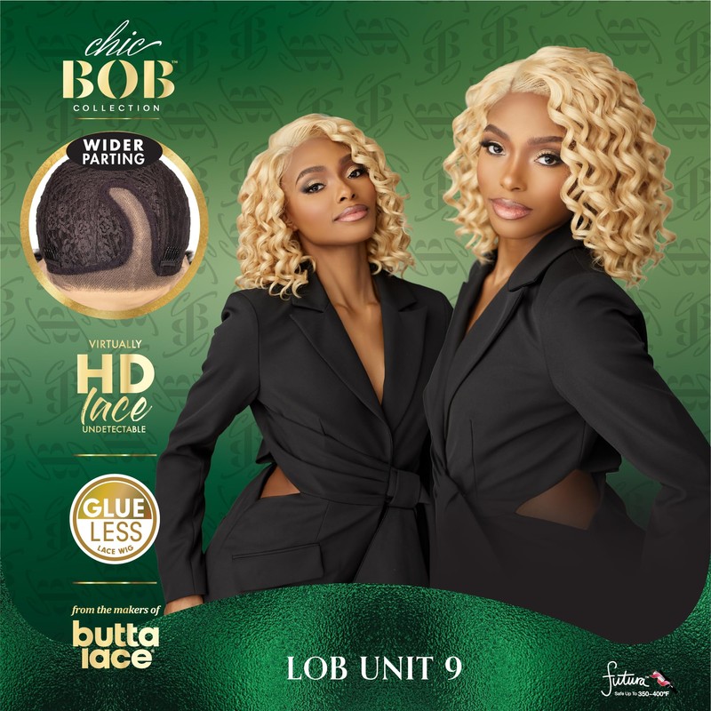 Sensationnel Chicbob Lace Frontwig - Lob Unit 9 Face Framing Glueless Wig Wide 5 Inch Deep Part Synthetic Preplucked Hairline (HONEYBLONDE)