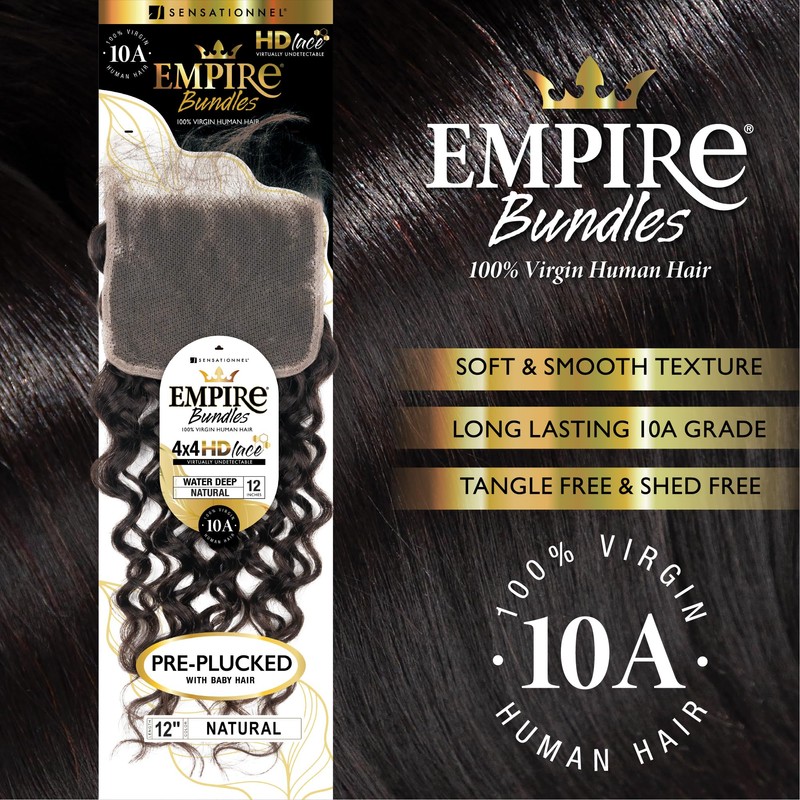 Sensationnel Empire bundle 4x4 closure - water deep 12 inch HD lace large free parting lace frontalclosure unprocessed human hair weave (NATURAL)