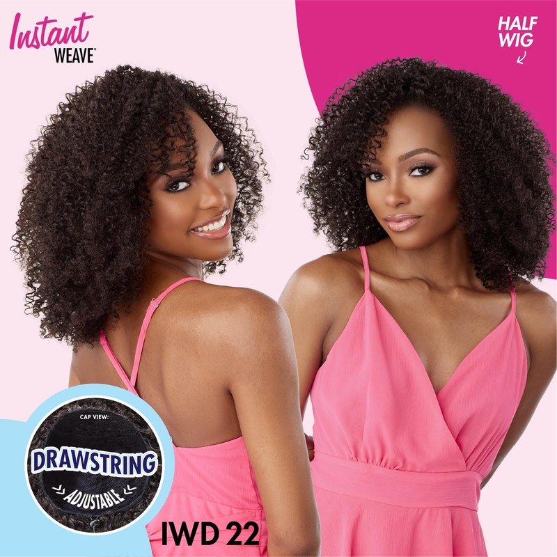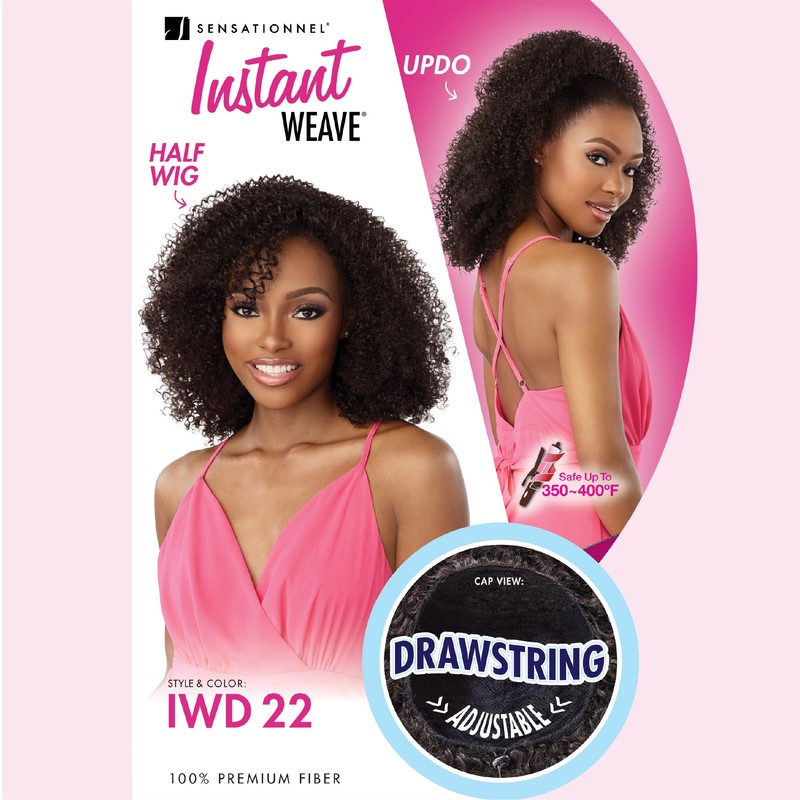 Sensationnel Instant weave half wig - iwd 22 synthetic half wig or updo cap with adjustable drawstring for seamless hair blending - Instant weave drawstring 22 (1B OFFBLACK)