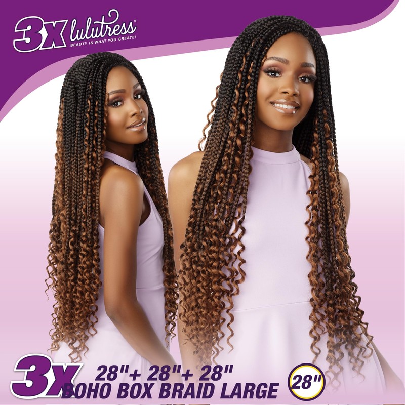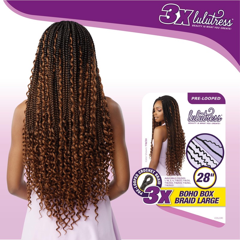 Sensationnel Lulutress crochet braiding hair - 3x boho box braid large 28 inch pre made diy all kanekalon synthetic locs twists (1 pack, T1B/30)