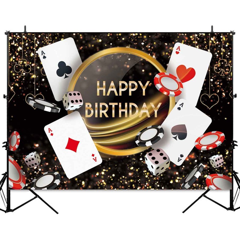 Sensfun Casino Birthday Backdrop Las Vegas Casino Night Photography Background Dice Poker Birthday Party Banner Decorations Photoshoot Prop Vinyl 10x7ft