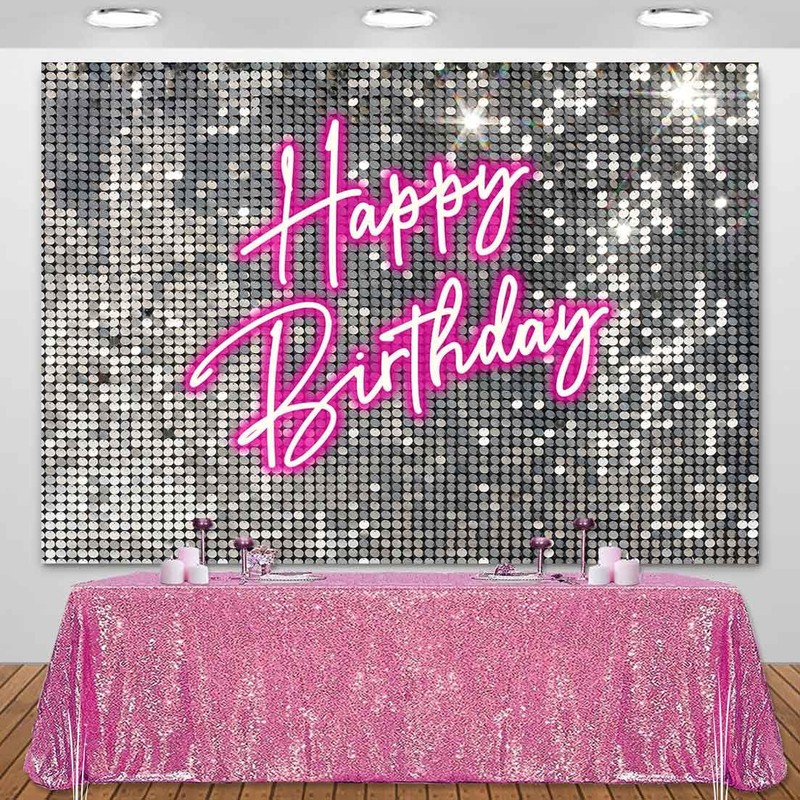 - 【Size】:7ftx5ft (2.1m width x1.5m height) Silver sequnis (NOT real sequins) pink neon happy birthday backdrop banner can meet your party decorate needs and help you to easily create a exquisite and vibrant party atmosphere!