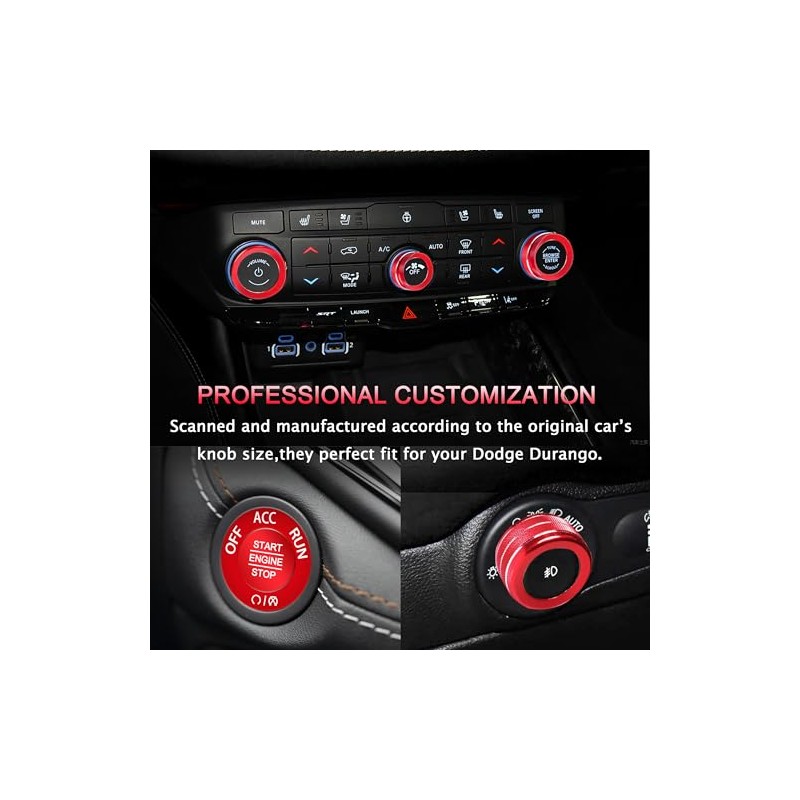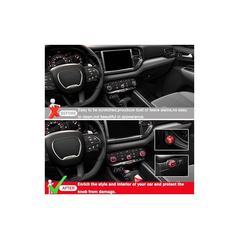 • >> Professional Customization: This Air Conditioning knob cover volume control tune switch buttton covers headlight control, enginer start stop buttton covers outer ring is perfectly fit for Dodge Durango Accessories 2021 2022 2023 2024 2025