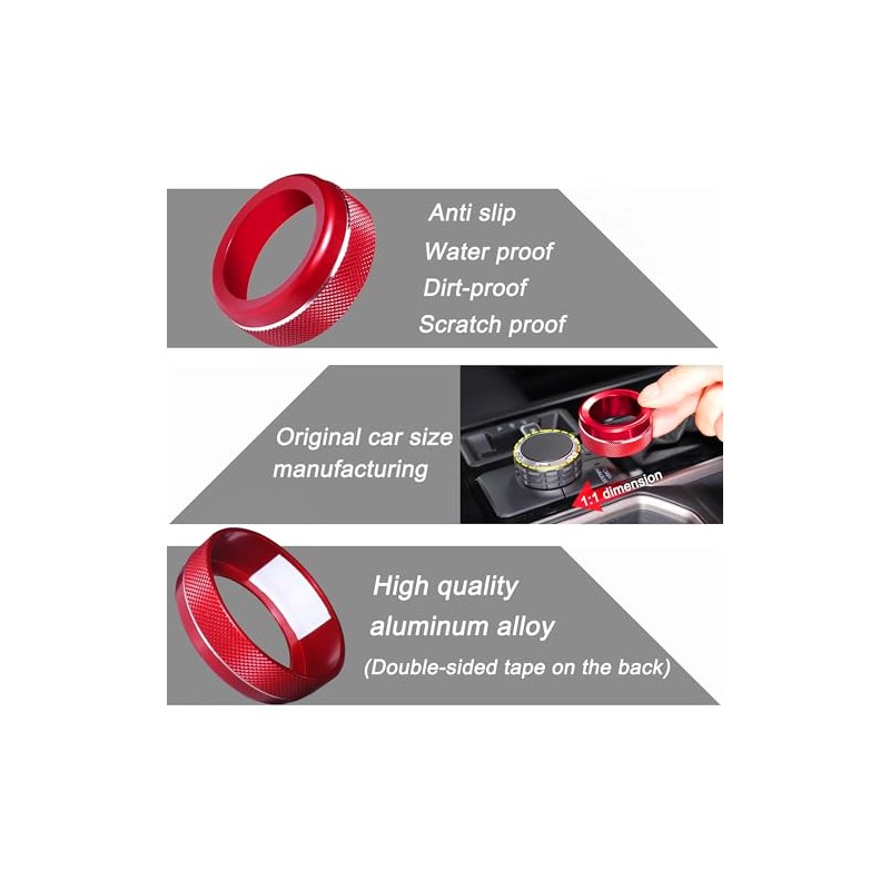 • >> Attractive Trim Rings: Knob button rings are unique metallic luster trim covers, with the original size of car design, keep your knob accessories attractive and individualized