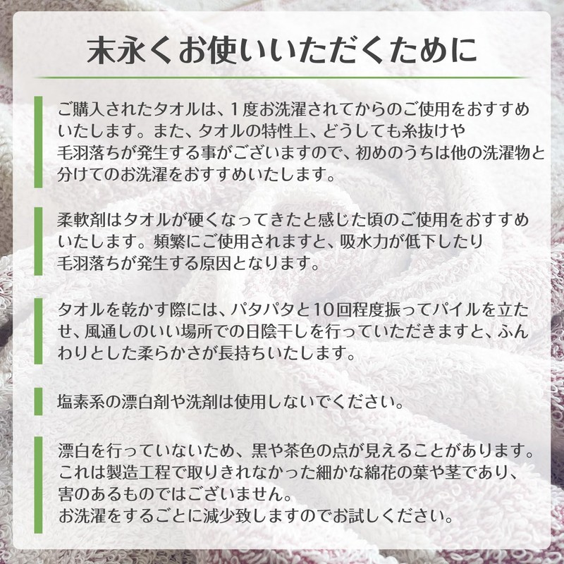 - (Eco-friendly Towel Series) This towel series is gentle on people and the environment because it uses no chemicals and is made with a focus on natural extracts. You can enjoy the original color and texture of unbleached cotton thread