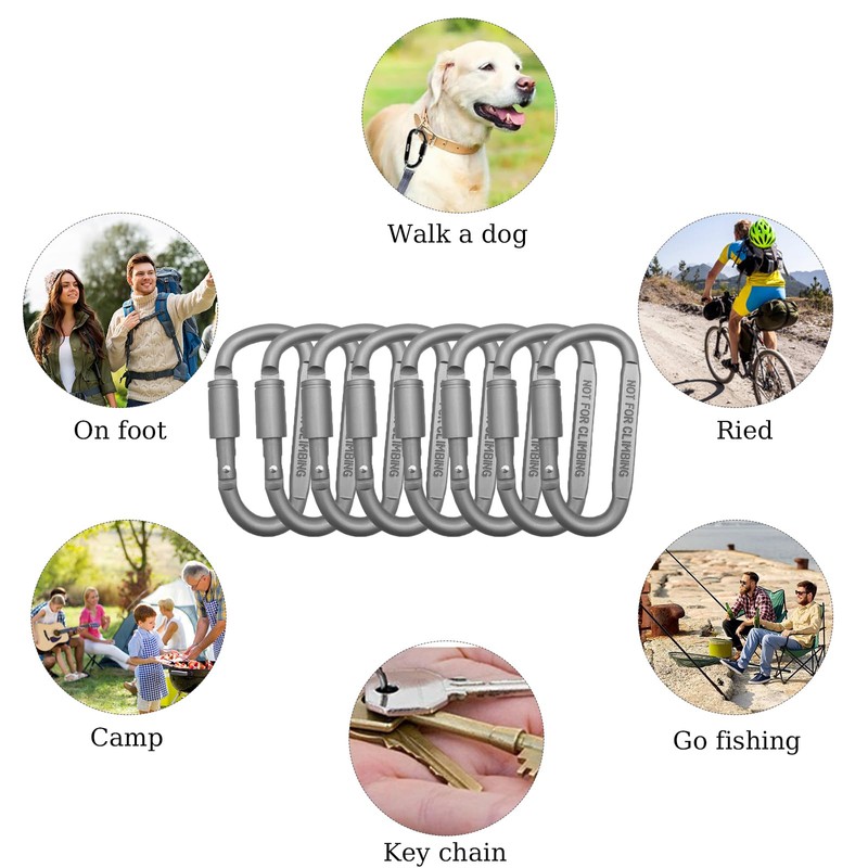 Senshuomy Carabiner Clip,Keyring,Metal Clips with Screw Lock for Hammock,Camping, Hiking, Backpack and More-Not for Climbing(8pcs/Grey)