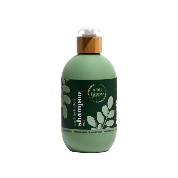 A Bit Hippy Sensitive Shampoo combines gentle plant-based cleansers with a non-irritating essential oil blend. It includes cationic guar gum (from guar beans) to help strengthen damaged hair, hydrate, and care for sensitive or dry scalps.
