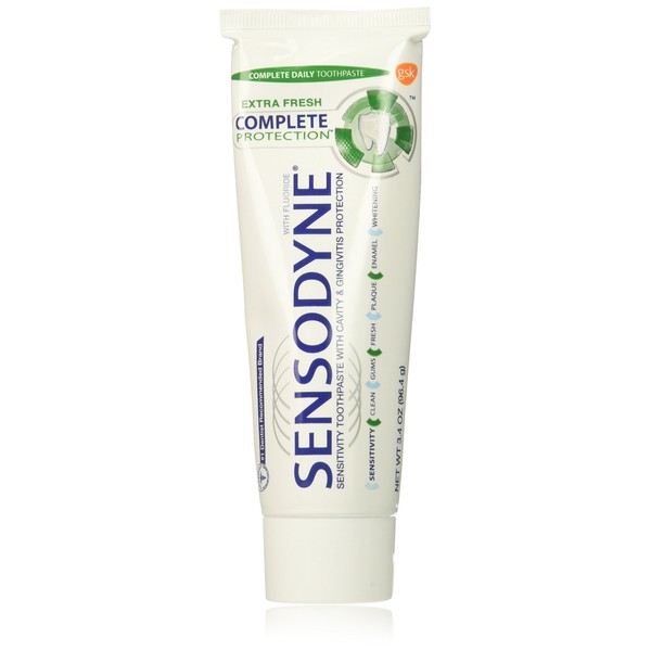 Sensodyne Complete Protection Extra Fresh Complete Daily Toothpaste with Fluoride. Sensitivity toothpaste with cavity & gingivitis protection. #1 Dentist recommended brand.