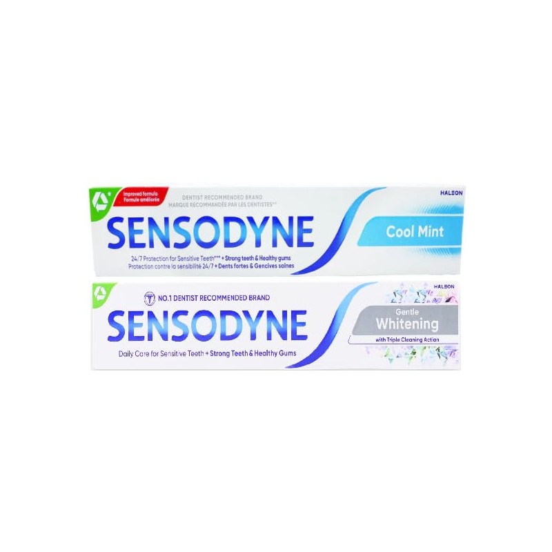 - 🦷 Sensitivity Relief & Gentle Whitening – Combines two trusted Sensodyne variants for comprehensive care: Gentle Whitening and Cool Mint, both designed to relieve tooth sensitivity while gently whitening your teeth.