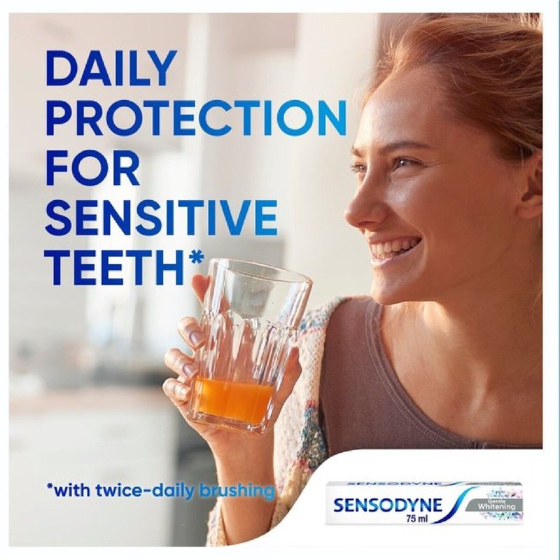 Sensodyne Daily Care Gentle Whitening Toothpaste provides daily care and protection for sensitive teeth. This daily toothpaste provides all of the benefits of a regular toothpaste, while helping to remove stains for naturally whiter teeth.