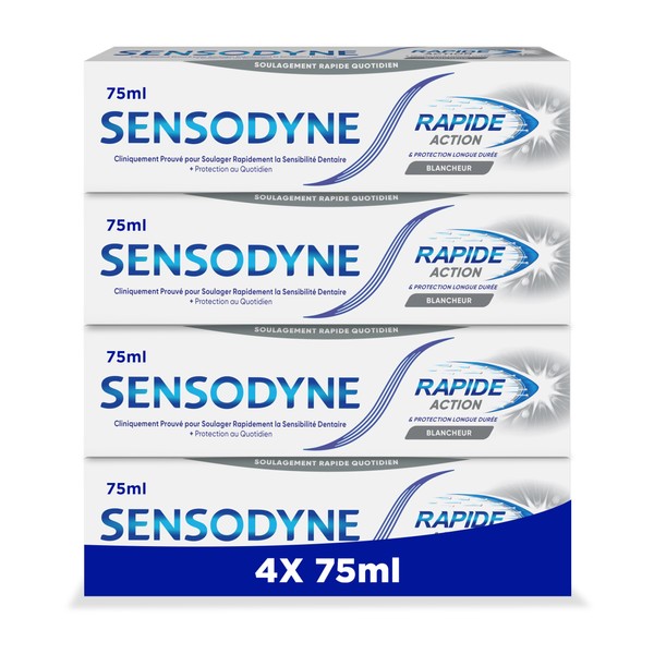 - Lieferumfang: 4 Tuben Zahnpasta Sensodyne Rapide Aktion Weißer 75 ml. Es wird empfohlen, es in einer kühlen und trockenen Umgebung aufzubewahren.