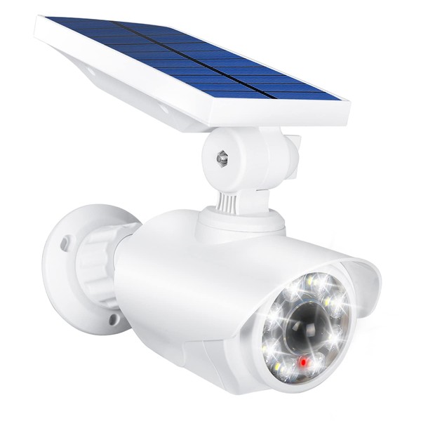 Sensor Light, Outdoor, Solar, Motion Sensor, Security Camera, Dummy Camera, Red Light Threatening, IP66 Waterproof, Dustproof, No Power Wiring Required, Solar Charging, Automatic Night Light, Motion Detection, 8 LED, 800 Lumens, 360° Adjustable Angle, Ou