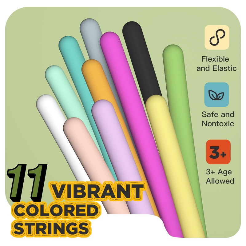 - 11 Vibrant Colored Strings: This fidget toy comes with a silicone board, 11 vibrant strings in 11 colors and a portable carrying bag. Sensory board and strings are crafted with premium non-toxic silicone, which can provide flexibility, durability, softness. It can be stored and carried easily to travel with the carrying bag.